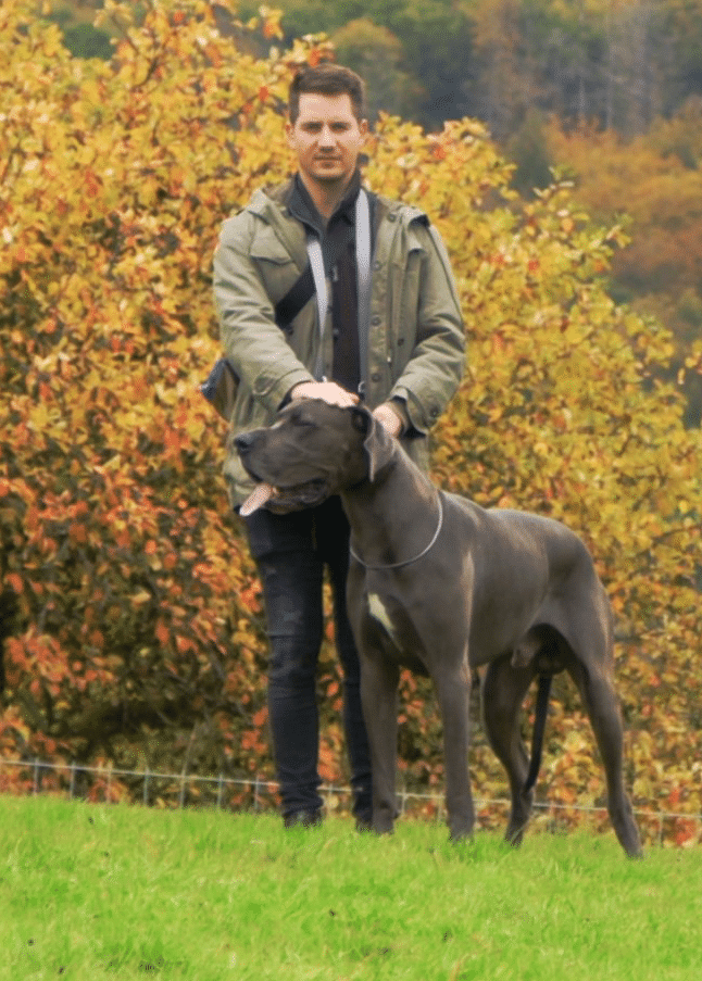 Die Deutsche Dogge ist eine sehr edle, liebevolle und große Hunderasse, welche ein anmutiges stolzes und elegantes Bild abgibt. Unser Diesel präsentiert sich als großer, doggentypischer blauer Rüde, welcher den Adel der Rasse gut vertritt und zeigt.