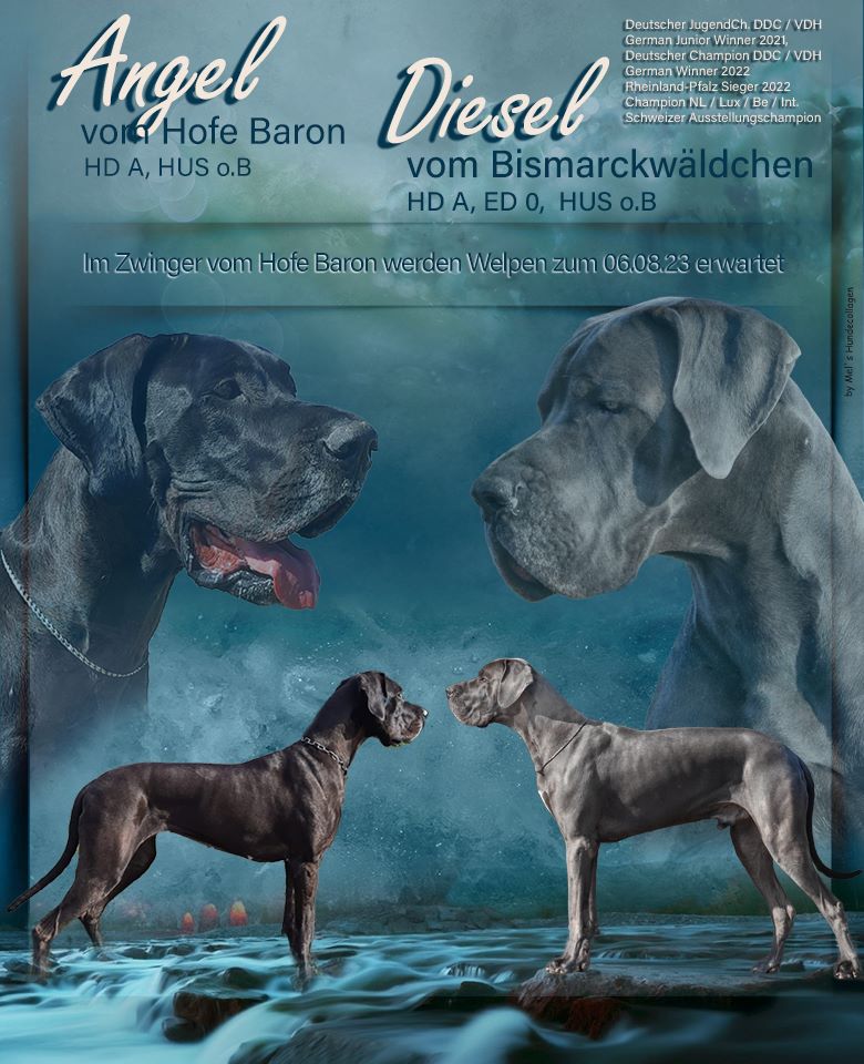 Die Verpaarung von Diesel vom Bismarckwäldchen und Angel vom Hofe Baron war der erste Deckerfolg von Diesel, es klappte direkt beim ersten Deckakt alles super und der Nachwuchs kann sich sehen lassen